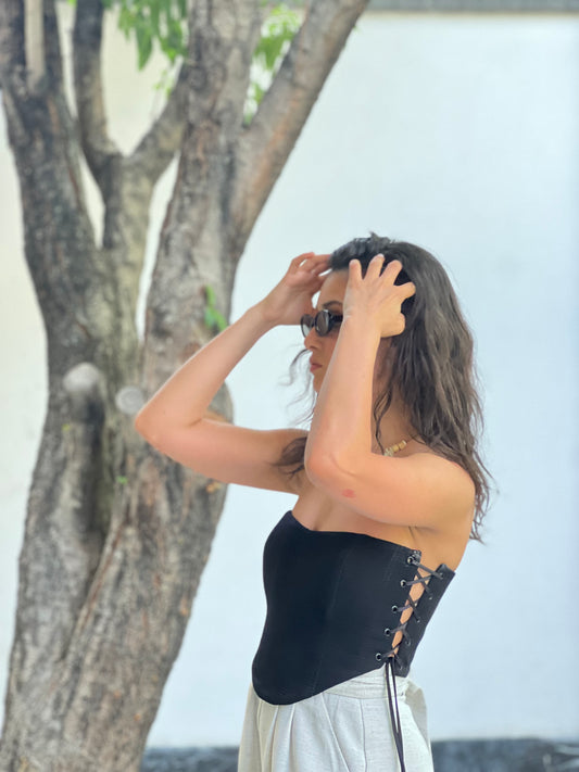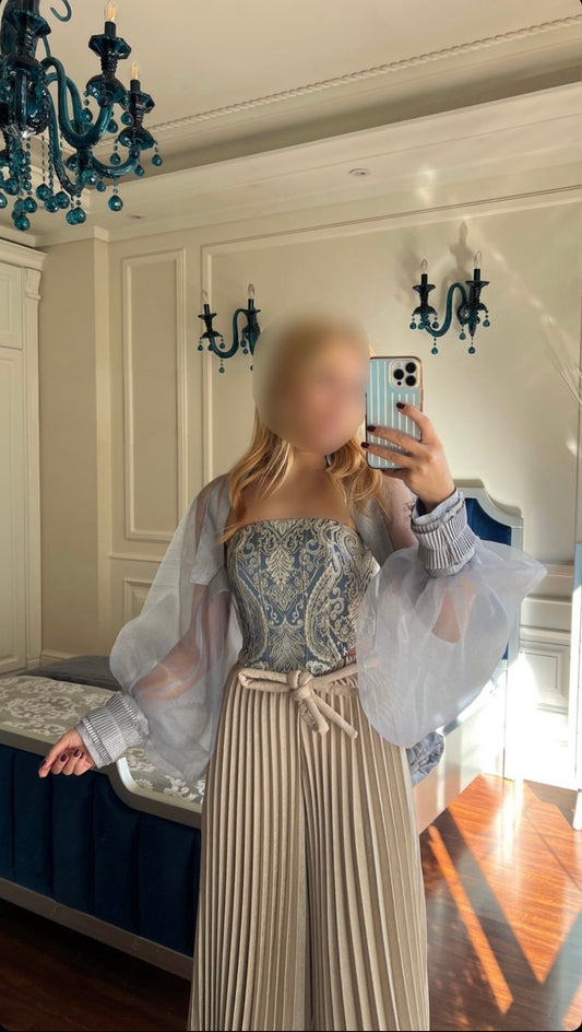 LUORINO LIGHT BROWN GHAJAR CROP TOP