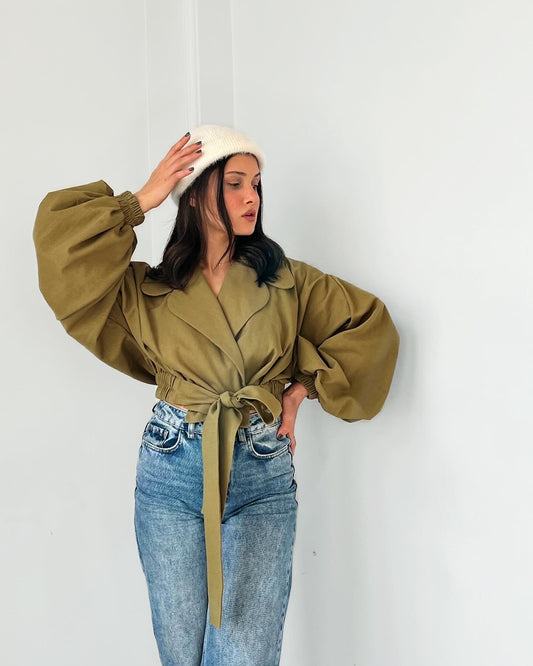 AIOLEH GREEN-FOUR-LEAF LINEN COAT