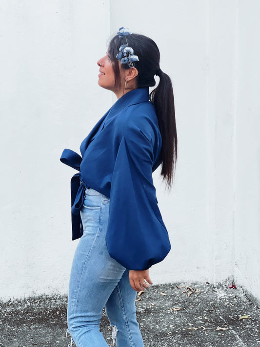AIOLEH BLUE-FOUR-LEAF LINEN COAT