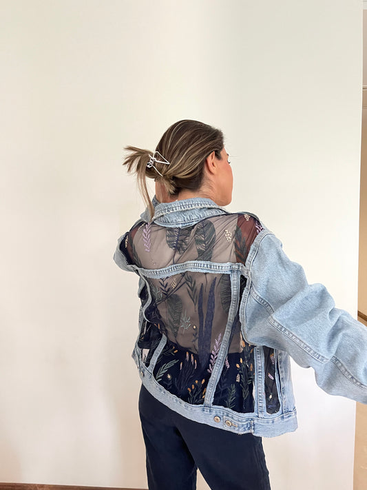 DARBAS SEE THROUGH FLORAL JEAN JACKET