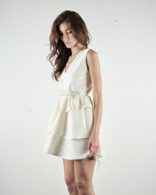 QUIM CREAMY WITH HANDMADE BELT DRESS