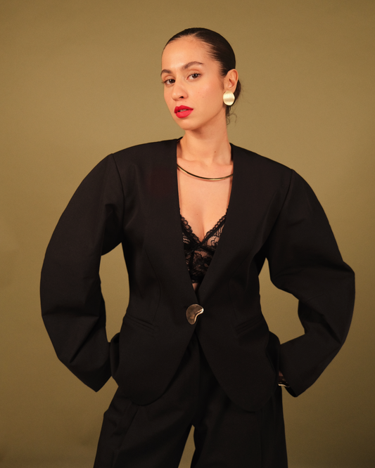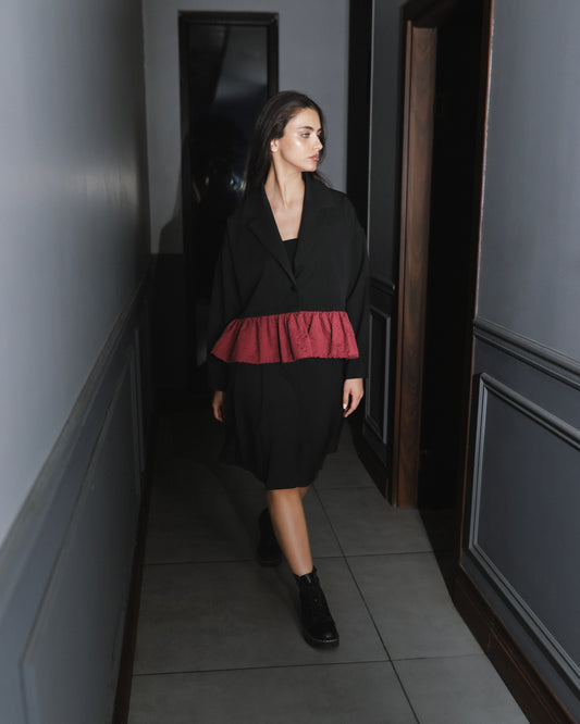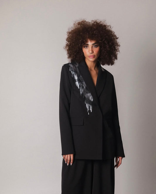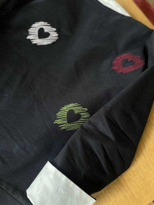QUIM BLACK LINEN WITH HEART SHAPED EMBROIDERY COAT