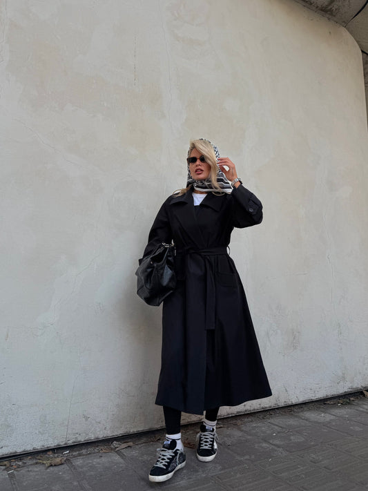 MIRA black OVERSIZED CLASSIC TRENCH COAT