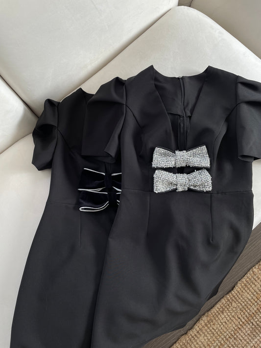 TINA.E BLACK & WHITE BOW-TIE DRESS