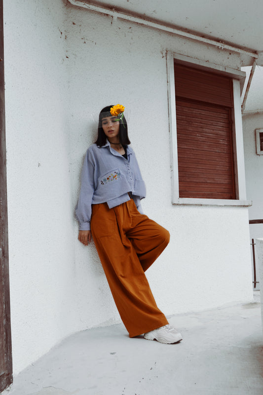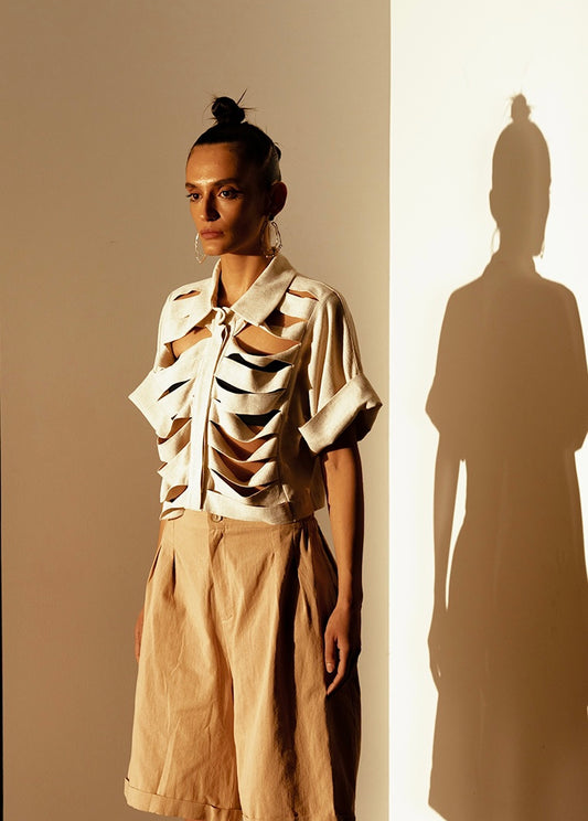 AIOLEH EMBROIDERED BEIGE FLOWERS LINEN SHIRT