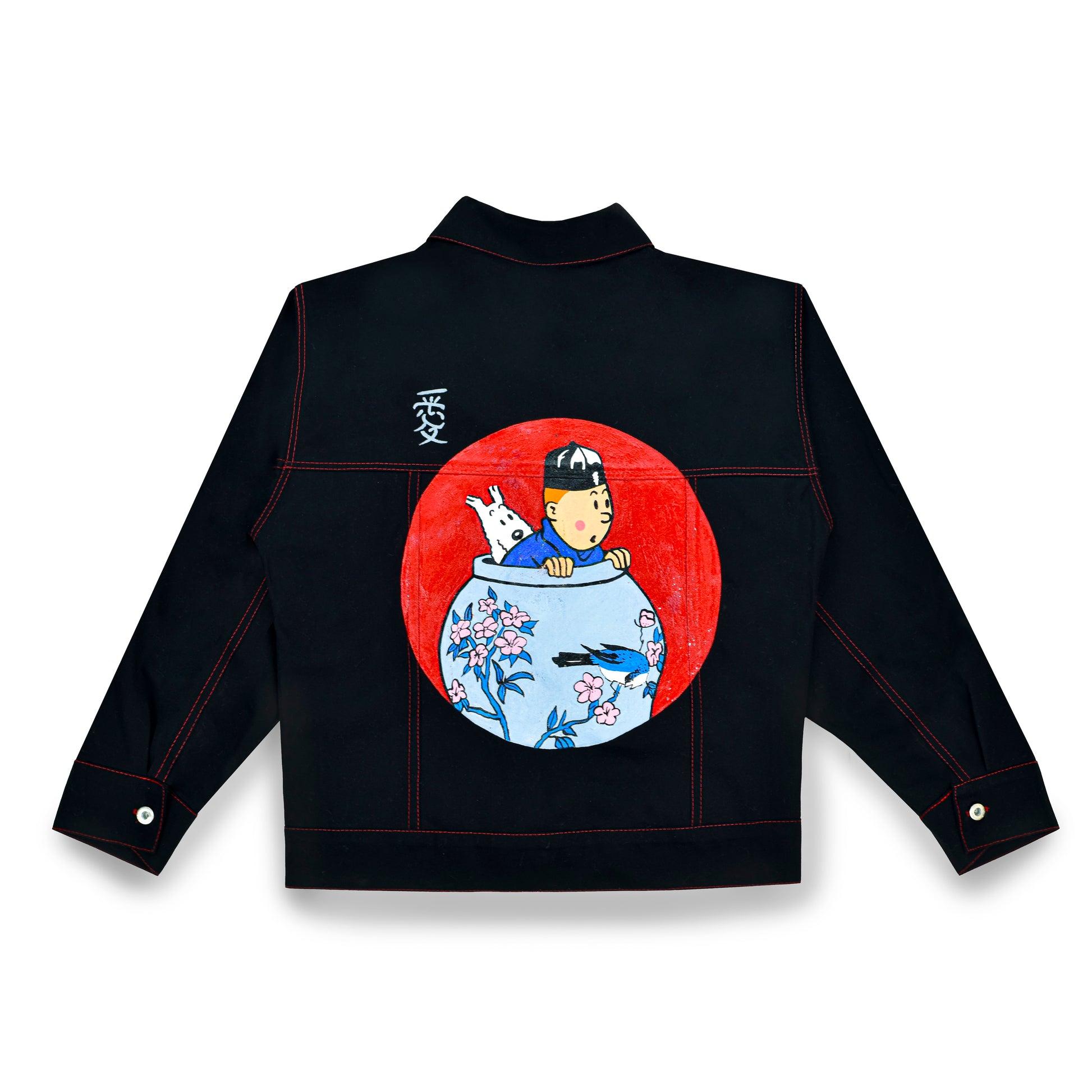 Elevate your style with the TIN TIN BLACK jacket. This hand-painted denim jacket is perfect for fashion-forward individuals. Make a statement with this unique and stylish piece.