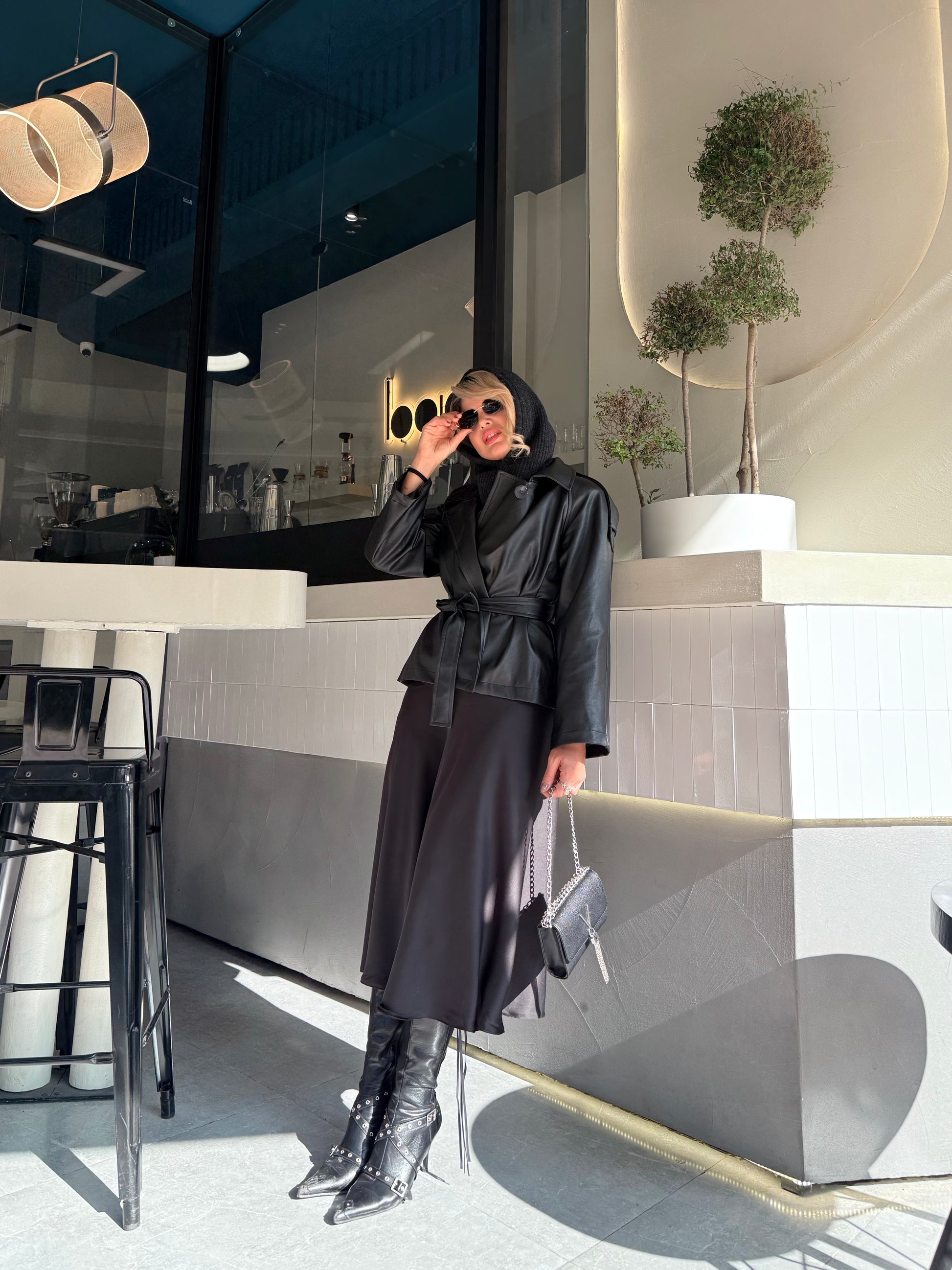 Make a statement with the PEONY LEATHER CLASSY JACKET—where sophistication meets versatility. This premium leather essential comes in two stunning colorways: rich black and warm brown, each offering distinct styling possibilities. The integrated belt allows you to define your silhouette and adapt your look from casual to formal occasions. Crafted for those who appreciate quality and timeless design, this jacket pairs beautifully with any wardrobe. Experience the confidence that comes with owning a piece of genuine leather craftsmanship.